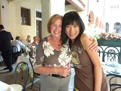その後おばさんたちはデザートタイム。プリンとティラミスを食べていました。残念ながらヘタレ日本人の我々にはデザートは無理。なのでカフェをいただきましょう。この食後のゆったりした時間に、さーちゃんイタリア語をなんとか駆使しながらのコミュニケーション。おばさんがルガノに住んでいることやお互いの住所を交換したりして、絵葉書を送ることになりました。日本にも来てもらえればいいんだけどね・・・旅先でのちょっとした出会いから生まれたつながりが、旅をより思い出深いものにしていくのです。かつて一人旅のころはこういったことはよくあったが、久しぶりにこうした感覚を楽しむことができた。イタリア語を駆使したさーちゃんに感謝です。