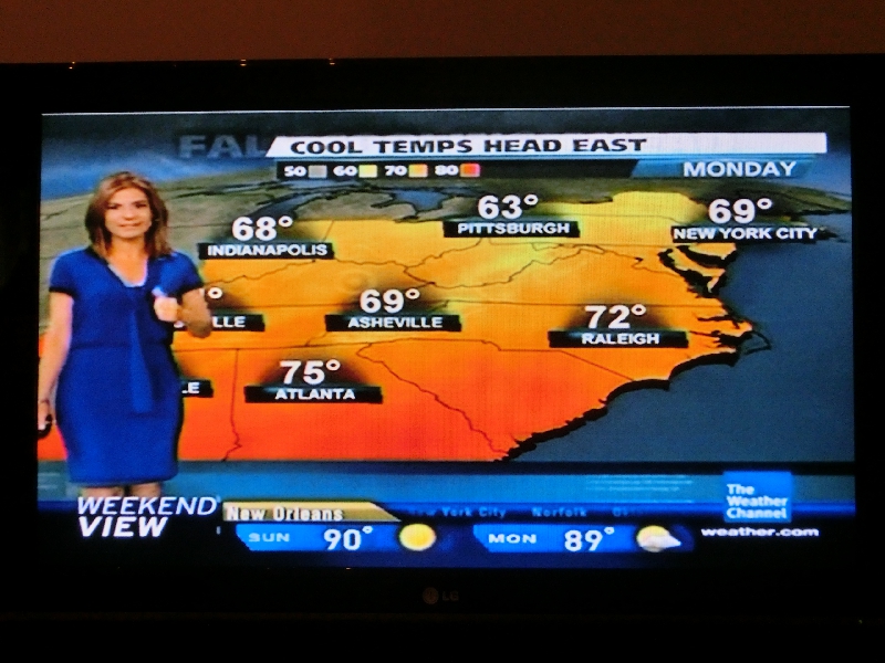 6時過ぎに起床。ホテルのベランダからは、そろそろ赤みかがった空が見えている。テレビと見ると天気予報をやっていた。アメリカは気温が華氏なので、なんとも分かりづらい。気温の欄に69とか75なんて数字があったら一瞬ビックリするなあ。さて、準備をして8時ごろに部屋をでる。外はかなり肌寒いが、今日もいい天気になりそうだ。