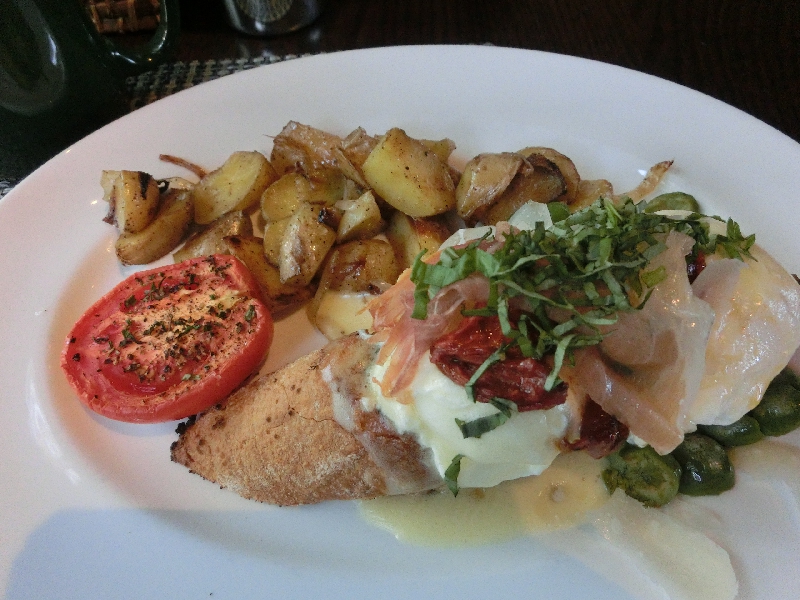 今日はホテルで朝ごはんを食べるのだが、その場所は一昨日行ったCuvée。どうやらホテルの中での朝ごはんはやってないんだね。どんな感じかと思ったが、特にバイキングとかそういうのではなくアラカルトで注文する形だ。それぞれベネディクトというものと、オムレツを選んでみたら、予想通り大きな皿にたっぷり出てきました。ベネディクトとはパンの上に生ハムや卵、ドライトマトなどがのっていて、味のしみたパンをナイフとフォークで食べる。しっかりボリュームがあって、なかなかおいしいですね。付け合わせのポテトもおいしいので食は進むが、かなり満腹になる。オムレツもしっかりハムが入っていてボリューム満点。ごちそうさまでした。ホテルに戻り、ロビーでしばらくのんびり。ここはコーヒーや紅茶がセルフで飲めるので、ゆっくり過ごせる。さて、部屋に戻って荷物をまとめ、チェックアウト。2泊したが、とてもいいホテルだったな。また機会があれば来たいものです。 | ||||||