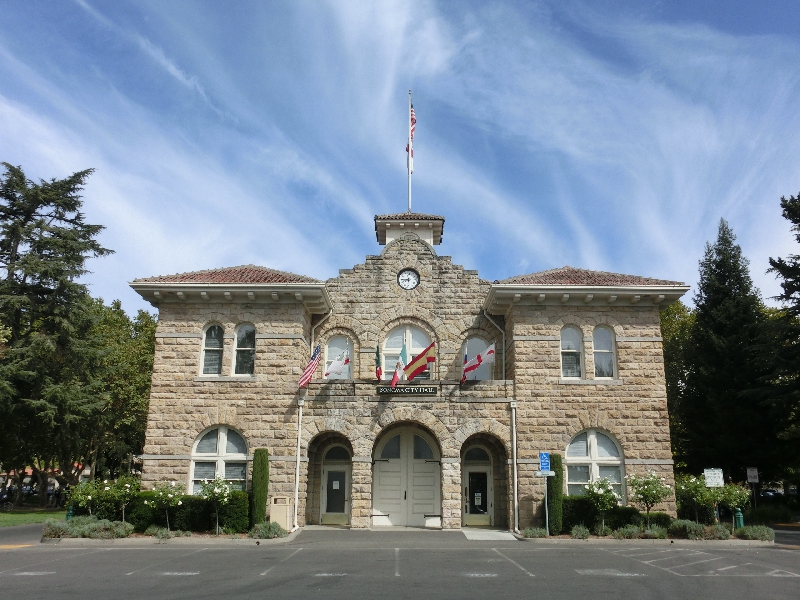 車に乗って、まずはソノマへと向かう。ナパバレーを代表する街の一つで、ちょうどサンフランシスコに帰る途中にうまく立ち寄れる。40分ほどのドライブだが、たくさんのブドウ畑の中を走るのが気持ちいい。このあたりのワイナリーは、ひとつあたりの規模も大きそうだ。車で走ると少し丘になっているところもあるので、まるで美瑛のような雰囲気のところもあった。ソノマの街に入ってきたぞ。広くてまっすぐなメインストリートに入り、ここをまっすぐ行くと突き当りに石造りの建物がある。あれが市庁舎らしいので、どうやら到着したようだ。メインストリート沿いの路上駐車は2時間までOKのようなので車を止めて、無事に到着だ。でもなんのチェックもないので、何をもって2時間かなんて分からないよね・・・まあそこは大人の常識の範囲でね。ソノマの街はナパに比べるとこじんまりとした感じで、散策が楽しそうだな。正面の市庁舎あたり一帯がソノマプラザといわれるエリアで、いろんなお店やワインショップがある。ワインショップやカフェなどがたくさんあり、ぶらぶらと街歩きが楽しいです。 | ||||||