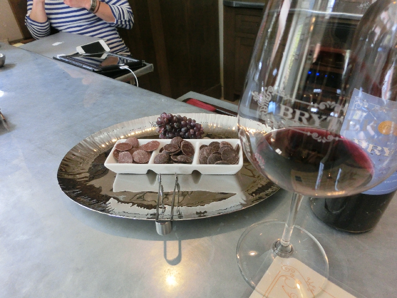 いくつかプランはあるが、4種類15ドルのにしましょう。最初はLe Stelleというスパークリング。ピノノワールが入っていて、ほんのり色づいている感じがきれいだ。一緒に出してくれたアーモンドと合うなあ。続いてはLuxという白ワイン。シャルドネで、さわやかさとコクのある味わいがいい。ここのご夫婦は日本にも旅行で行ったことがあるらしく、東京と鎌倉を回ったとのこと。次回は是非奈良京都など、関西地方をお薦めしておきました。もう一組お客さんが入ってきて、連れている犬がかわいいな。ここソノマの街は、犬を連れている人が多い気がする。さて、この後は赤ワイン。Maritusというカベルネソービニオンをベースにしたブレンドのワインで、これがすごくおいしく感じだ。飲みやすさと赤ワインの軽い渋み。いいなあ、これ。最後はInspireという、カベルネソービニオン100%のワイン。これはしっかりフルボディ、出してくれたチョコレートとよく合います。では記念として、3番目に飲んだカベルネを一本いただきましょう。iPadで決済をすべて済ませるという最先端のスマートな手続きで、ワインをゲット。いやいや、オーナーもいい感じで、楽しいひと時でした。 | ||||||