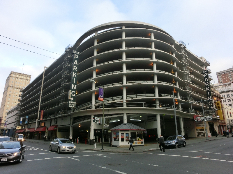 無事に橋を渡り切り、料金所で通行料6ドルを払う。あとははサンフランシスコのダウンタウンを走るのだが、やはり坂が多い。遠くに見える坂がまるでジャンプ台のようだが、その手前で曲がり坂を上って行く。この街並みも、サンフランシスコの不思議です。しばらくして今度は下り坂、ずっと下がっていくとO'FARRELL通りに来たぞ。ここを左折してしばらく行くと、最終目的地の巨大なガレージ。レンタカー各社がここに返すようになっているようで、無事にここまで来られてよかったな。4日間のレンタカーの旅、お疲れ様でした。このガレージはヒルトンホテルの目の前だが、その斜め前が今日のホテル、ニッコーサンフランシスコ。これは便利だな。またナパに来ることがあれば、ヒルトンかニッコーにしよう。ホテルに入ると、ここでは日本語でのチェックイン。やっぱり日本人、落ち着きますね。ここでなんとワインの試飲があるとのことで、赤白それぞれをグラスでいただく。白はナパバレーだが、赤がチリワインだったのはなぜだろうね。ワイングラスとともに部屋に入り、ほっと一息。お疲れ様でした。