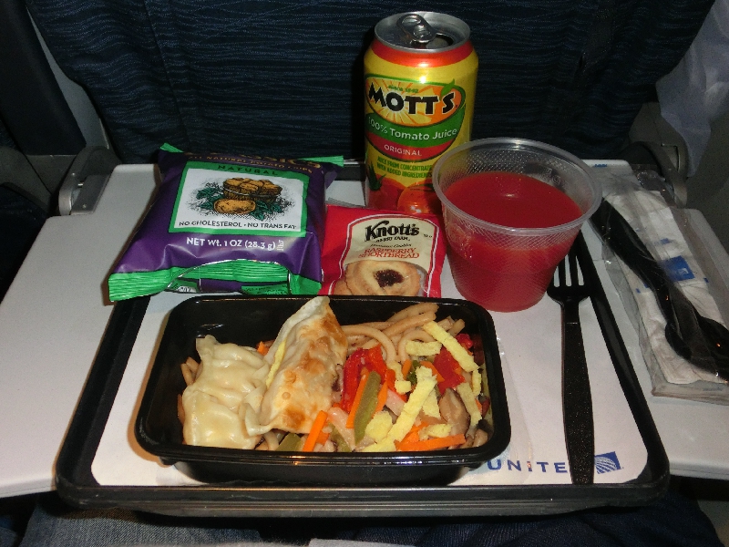 いつの間にやら到着まで3時間を切った。結構寝ているせいか、意外と早いような気がする。機内の音楽も飽きてきたので、ウォークマンでも聞きますか。しばらくして機内が明るくなり、ドリンク&機内食サービススタート。眠気を飛ばしたいので冷たいトマトジュースをいただきこれはうまいのだが、問題は機内食。サンドイッチか焼きそばかと言われたので焼きそばを選んでみる。これが・・・正直まずい。麺はふにゃふにゃだし、野菜は逆に固いし、おまけに餃子まで入っていてこれが中途半端。もう少しなんともならないモノかなあ・・・一緒についてきたポテトチップがいちばんおいしいが、さっきもポテチ食べたよね。いやあユナイテッド、もうちょっと何とかしなさいよ。まあ無事に日本まで届けてくれればいいか、と半分あきらめの境地でもあるが。到着まで最後の時間をのんびり過ごし、飛行機は徐々に高度を下げていく。窓からは山がちな日本の景色が見えている。そして日本時間の15時過ぎ、無事に関西国際空港に到着。お疲れ様でした。