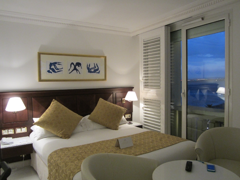 海風が心地よく、同じ温度でも日本とは大違いだ。さて、ここからホテルまでは歩いて数分ほど。あの有名なネグレスコホテルの隣にある、ウェストエンドホテルがニースの宿泊地。早速チェックインし、部屋に入る。「海側」ではなく「海が見える部屋」を取っていたのだが、十分海が見えるきれいな部屋だ。だって海側だとそれだけで値段が倍するもんで・・・目の前にネグレスコホテル、そして青い海が広がるという絶好の景色ではないですか。これはいいぞ。