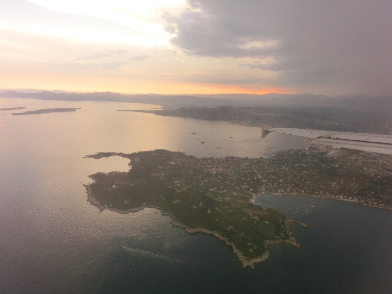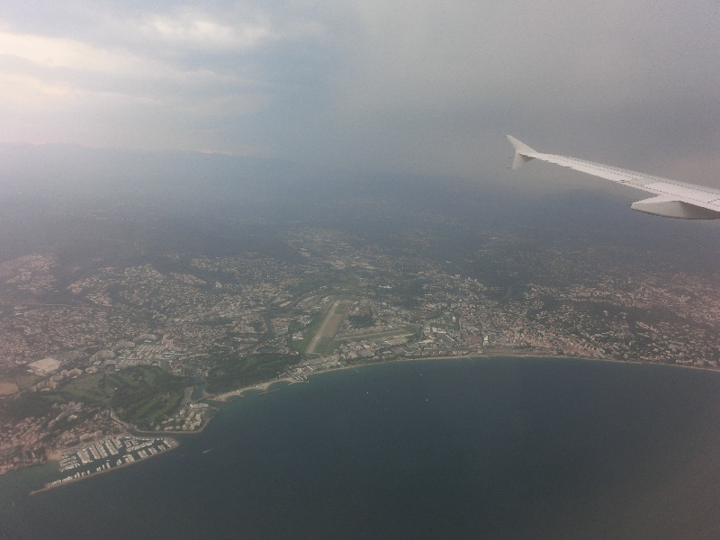 ようやく搭乗が始まり、最後尾のみにしかない2列席に着く。するとさっそくCAさんがにこやかにお水をくれました。なんだかサービスいいなあ。この後全員の搭乗に時間がかかったのか、定刻の18:30を40分以上遅れ、ようやく出発。パリに着くのは早かったのに、出るのはずいぶん時間がかかりました。飛行機はフランスの豊かな大地を見下ろしながら飛んでいく。快適なのだが、最後尾にいるCAさんはなぜにこんなにずっとしゃべっているのか?内容が全く分からないが、雰囲気からは仕事で必要な話をしているとはとても思えない・・・アリタリアもそうだが、やっぱりこれがラテン系か。日本だったら一発でアウトかもね。その後のドリンクサービスの間だけはさすがに静かだったけどね。1時間ほど経ち、そろそろニース。海沿いに空港が見えたと思ったらあそこはどうやらカンヌ空港。海岸線沿いを徐々に高度を落としていく。空に雲が多いのが気になるが・・・定刻より1時間近く遅れ、ニース・コートダジュール空港に到着しました。 | ||||||