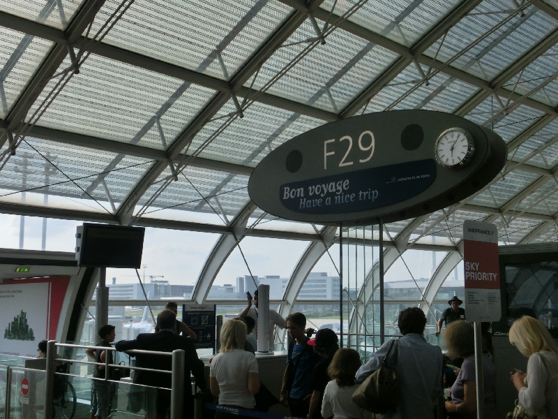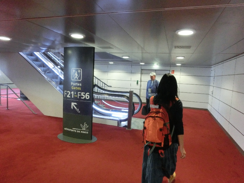 ここで飛行機を乗り継ぐ。ニース行は18:30なので、まだ2時間近くある。そういいながら乗継は何かと時間がかかるので、サクサク行きましょう。到着したのはEターミナルだが、ここは初めて来る気がする。次はFターミナルなので、順序に沿ってどんどんと歩いていく。途中、セキュリティチェックを通るのだが、ここでペットボトルの2本のチェックをされてしまいました・・・未開封にも関わらず、持込み不可とのこと。うーん、もったいないが仕方がない。でももったいないので、麦茶はここで飲んでしまいましょう。さすがに一気には飲めないと思っていたが、お酒を飲んだせいか機内が乾燥していたせいか、それなりに水分はとっていたはずなのにするすると入る。結果、2人で一撃で飲み干してしまいました。もう一本は水だが、これはしゃーない、さよなら。それにしてもこの制度、何とかならないもんですかねえ。