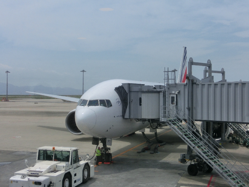 ゲート前でしばし待つ。南ウィングの先端というあまり来たことのないエリアだが、外の飛行機はあまり見えない場所だな。そんな中、KLMとピーチが飛び立っていくの見えました。さて、いよいよ搭乗。後方の座席の我々は、最初のグループとして乗ることができました。エールフランス、2004年のバルサ以来で実に久しぶり。座席に着き、出発を待つ。個人用のビデオはあるが、画面はあまり大きくないし事前に見たプログラムも今一つだったので、これはあまり期待できず。まあその分、本読んだりウォークマン聞いたり、ゆっくり過ごせばいいね。いつの間にか眠りに落ちる中、飛行機はパリに向けて出発した。