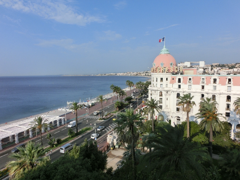 今日は6時過ぎに起床。もう時差ぼけもないかもしれないなあ。シャワーを浴びて準備をして、8時半ごろに部屋を出る。昨日買ったジャムなどがスーツケースに入っているので、かなり重くなっている。エレベーターは相変わらず故障中だが、荷物用のエレベーターが動いているのでそちらで移動。チェックアウトを済ませ、では行きますか。ここから駅までは道なりにまっすぐだ。途中朝ごはん用のサンドイッチをカフェで買い、ひたすら駅へと進む。がたごとの道がスーツケースには厳しいが、何とか9時過ぎにニース駅に到着。