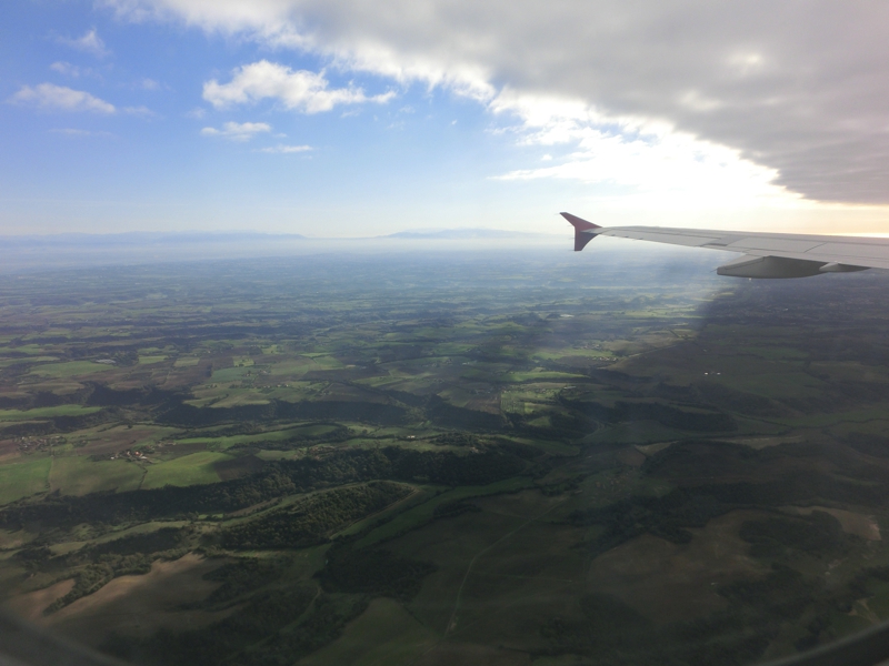 おおよそ八割程度埋まったローマ便が出発した。離陸後しばらくすると、朝ごはんタイム。特に選択肢はないので、チーズとオリーブ、スクランブルエッグとグリルトマト、トルコ風のほうれん草パイ。さっきと同じように、卵にトマトとチーズを混ぜていただく。それなりにおいしいかな。食後にはやっぱり紅茶をいただき、ごちそうさまでした。ローマまでは約2時間半の旅、しばらくすると着陸態勢に入る。イタリアの豊かな田園風景を見下ろしながら、ローマ・フィウチミーノ国際空港へと到着しました。
