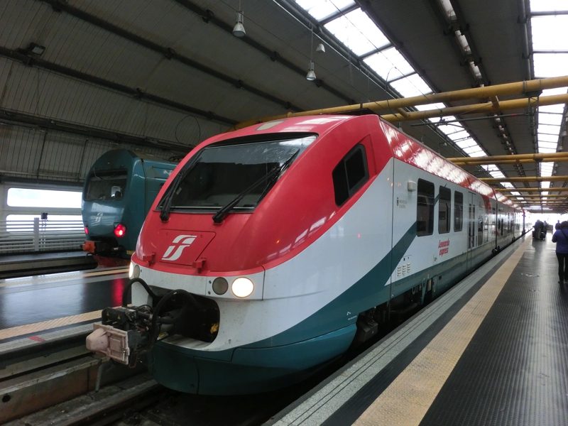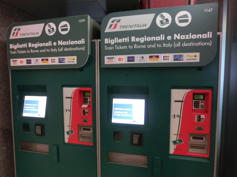 久しぶりのローマだな。まずは荷物を受け取る。カウンターの場所が分かりづらかったが、よく見ると壁際に掲示板がありそこで番号が分かるようになっていた。間もなく荷物が出てきたので一安心。やっぱり万が一があるので、特に乗り継ぎ便では無事に荷物を受け取ると安心するね。到着ロビーへと出てきたので、まずはキャッシング。これがちょっと苦労した。最初はどのカードを使ってもうまく行かず、別の機械でもうまく行かず、さらに別の機械を見つけて金額を少なめにしたらようやく出金されました。100ユーロはおろせて200ユーロはおろせないなんてそんなことはないはずだが、なんでだろうね。まあとにかく無事に現金をゲットしたので、テルミニ駅までの切符を購入(28E)。なかなかいい値段するなあ。あとは表示に従って進み、ようやく見覚えのある駅のホームに到着した。前はもっと動く歩道を歩いたような気がするのだが、到着したターミナルが違っているんだろうね。しばらくして、テルミニ駅行きの電車が到着。やっぱりどことなく汚れているのは仕方ないのかな。