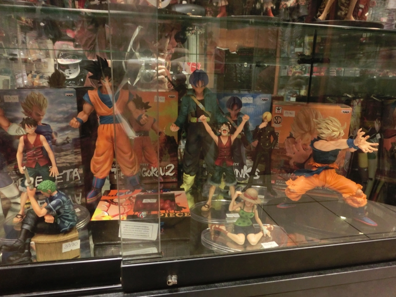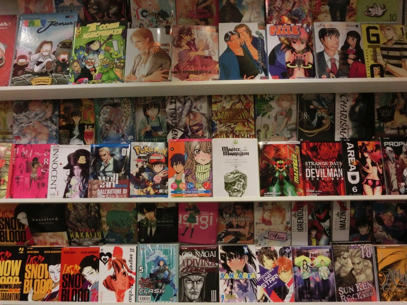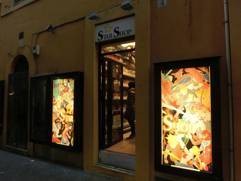 では街歩きを再会。ここまで来たら例によって、スペイン広場まで行きましょう。近づくにつれてだんだんと人通りが多くなってきて、そして久しぶりに、スペイン広場に到着だ。それにしてもすごい人だなあ〜。階段にも泉にも、たくさんの人が集まっている。階段の上にある教会はいつみても工事中だ。まあここはこのくらいとして、実は次の目的地はこの先にある。広場前の通りをそのまま進み、ポポロ広場の少し手前の道を左手に入ると、ありましたStarShop。さほど広くないお店の中には、日本のアニメに関するものがたくさんあり、漫画本やフィギュアなどが壁一面に並べられている。やっぱり人気はワンピースやナルトなのかなあ。でも最近のアニメはよくわからないので、往年の名作を見てみましょう。北斗の拳やシティハンター、聖闘士星矢やドラゴンボールなど、いわゆる黄金期のジャンプアニメもいろいろあるぞ。せっかくなので何かを買いたいが、
