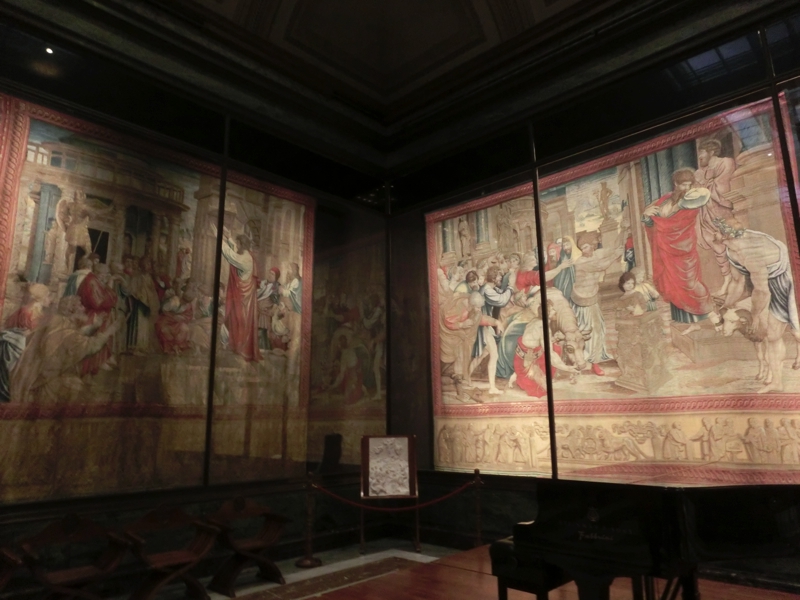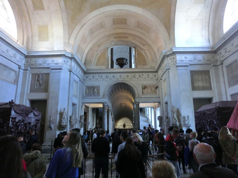 ここからはピオ・クレメンティーノ美術館で、教皇ピオ6世とクレメンス14世の名を取ったもの。古代ギリシャやローマ時代の彫刻を中心に展示されている。馬車などの彫刻もあり、ここも見応え十分。そのまま燭台のギャラリーへと入り、その先にはタペストリーのギャラリー。先ほどの絵画館でもあったような巨大なタペストリーが、壁一面に飾られている。どれも本当に美しい。