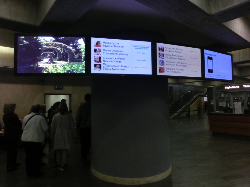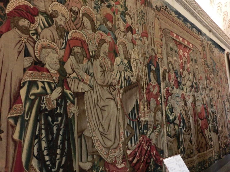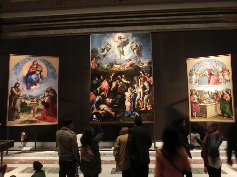 さて、まずは絵画館(Pinacoteca)。入り口には、ミケランジェロのピエタのレプリカがある。本物はサンピエトロ大聖堂内にあるわけですね。先に進むと、各部屋にはたくさんの絵画が展示されている。ここは11世紀から19世紀に書かれた絵画やタペストリーが展示されている。各絵にはストーリーがあり、詳しいことは分からないが、その美しさには目を引きつけられる。ミケランジェロやダヴィンチ、ラファエロにカラヴァッジョらの作品が並んでいるそうだ。
