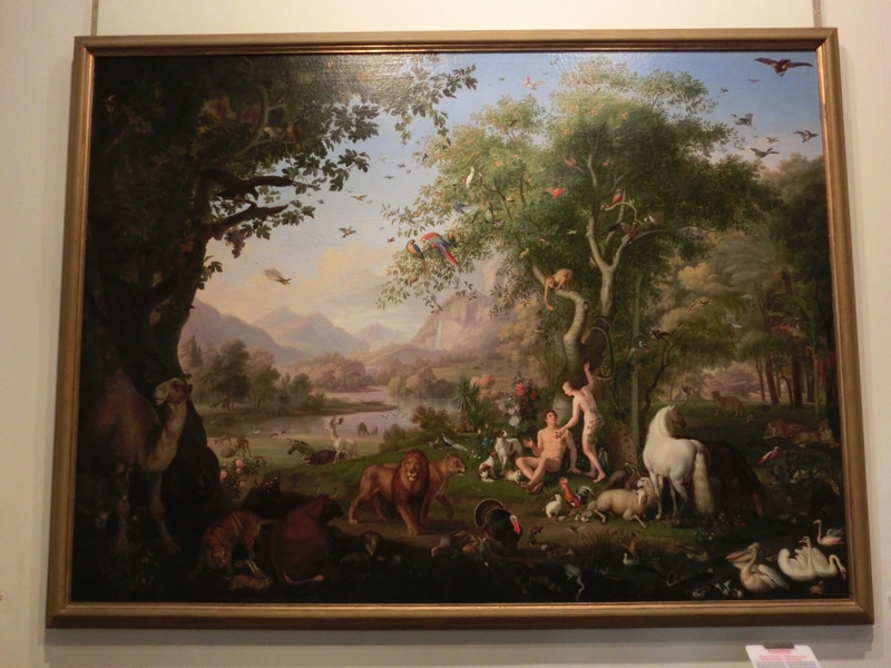 そして一番奥の大きな部屋にあった巨大なタペストリーは圧巻。でもここがまだこの絵画館の中間地点で、その後もたくさんの絵画を鑑賞しました。ここは非常に見応えのある美術館で、ここだけで一時間近くがたってしまいました。順路に沿って進むと、2つに分かれた標識が。エジプト美術館をみるか、中庭を通っていくか。うーん、先は長いし、既に絵画館で時間と体力を使ったので、エジプトはまあいいか。ということで中庭に出る。
