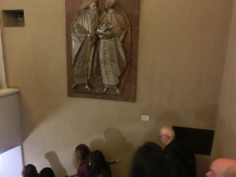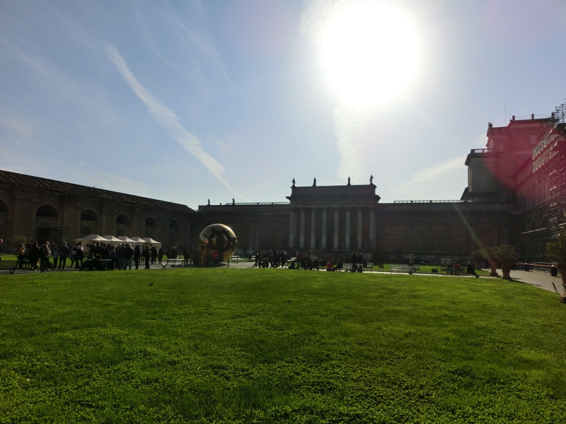そのあとは階段を下がって現代美術の展示などのエリアを通り、そしていよいよシスティーナ礼拝堂。ここだけは写真撮影が禁止となっている。たくさんの人が壁にかかれたミケランジェロの「最後の審判」を見上げている。礼拝堂は想像よりも小さく感じたが、その壁一面に書かれた巨大な絵画がすばらしい。色彩も美しく、生き生きとしている。天井画には「アダムの創造」「楽園追放」などがあり、詳しくストーリーがわかればより興味深く見ることができただろうな。圧倒的な迫力で見るものを魅了するこの作品を目に焼き付け、礼拝堂を後にした。