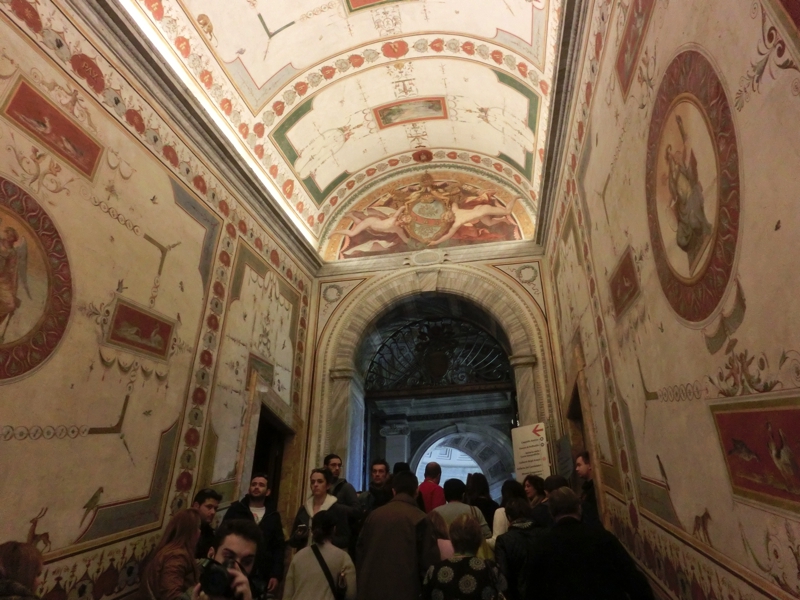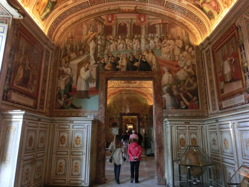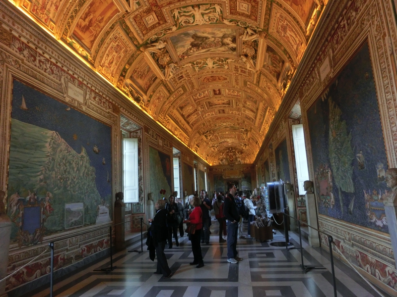 次にあるのが地図のギャラリー、イタリアの各地を中心とした古代の地図が展示されている。16世紀後半にグレゴリウス13世によって、各地の地図が書かれたとのこと。どの街か分かりにくいのも多いが、シチリアやコルシカなどはよく分かるし、イタリア全体を表したものはほぼ現代の地図と近い形でみることができる。あとはベネチア、昔からあの不思議な街並が存在していたことが分かって面白い。その後ピウス5世の居室、ゾビエスキ王の間を抜ける。