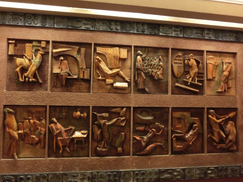 長いエスカレータを上ると、広いテラスに出た。ここから、世界最大級といわれる博物館の鑑賞が始まる。なんでも20以上の美術館などの施設があるので、じっくりみていると一週間はかかってしまうらしい。そんなわけにはいかないので、2時間ほどで回れるようにさくさく進んでいきましょう。