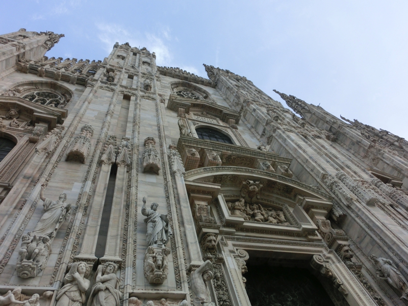 ここからミラノの中心・ドゥオモまで歩ける。教会などの建物を見ながら、ギャレリアに到着。久しぶりだが、以前はほぼ真ん中にあったマクドナルドがなくなっている。周りに合わせてちょっとおしゃれな外観だったが、その場所はグッチになっていました。ギャレリア内にある本屋に入ると、新聞が売っていたので2種類ゲット(2.7E)。昨日の試合を振り返ることができる。ここでも日本の漫画を見てみたが、やっぱりワンピースやナルトが中心かな。ギャレリアを抜けると広場があり、そこにそびえ建つのはミラノを象徴するドゥオモ。前回来たときはこの正面が全面的に改修中であったが、今はきれいになっている。初めて見たときよりも、全体的に色合いが明るくなったように感じる。こんな改修を繰り返して、歴史的な建造物は保存されているわけですね。