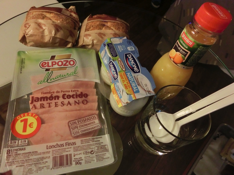 今日は5時起き。さすがに少しずつ、こちらの時間になれつつある。7時頃から準備をして、今日の朝ごはんはスーパー買い出しのいろいろ。オレンジジュースは絞り立ての感じがあっておいしいぞ。1ユーロのハムもうまいが、パンはイマイチ。まあ見るからにそんな感じではあったが、固いだけで味があまりない。ハムがないととても食べられないです。ヨーグルトとitaloでいただいたクッキーで締め、朝ごはんは完了。9時をすぎた頃、出かけますか。まずはとにかくサグラダファミリア。ホテルから少し歩いたところにあるUniversitad駅から一本で地下鉄サグラダファミリア駅に到着(4.3E)。