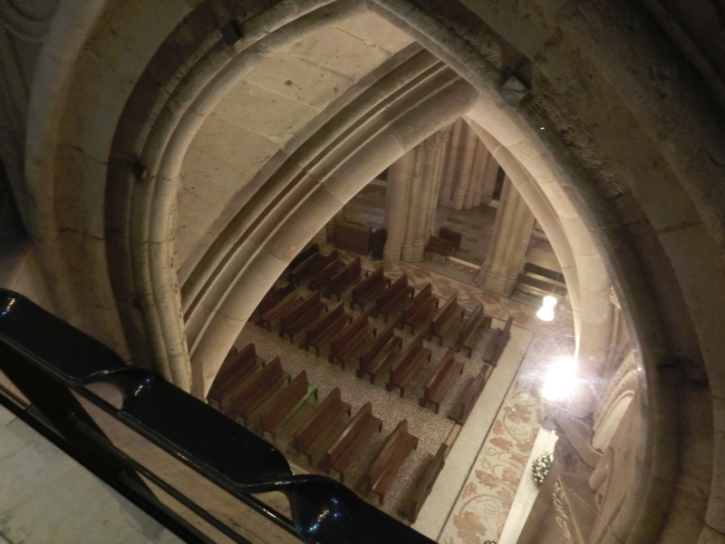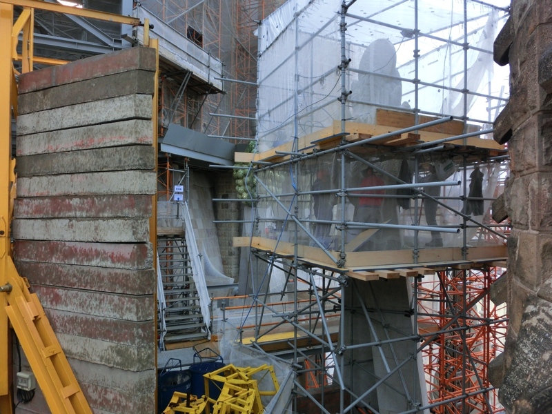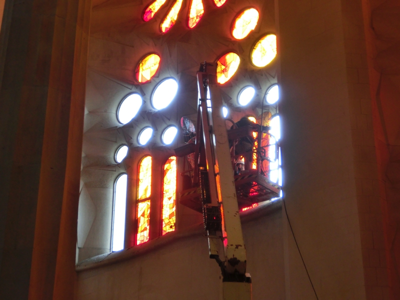 あとはもう少し教会内を見ておこう。さっき工事中だったところに行ってみると、さらにステンドグラスが無事に装着されたようだ。こういう地道で確実な作業は、見ていて飽きないですね。新たにちょっと大きめのステンドグラスが装着されたのを見届け、そろそろ行きましょうか。