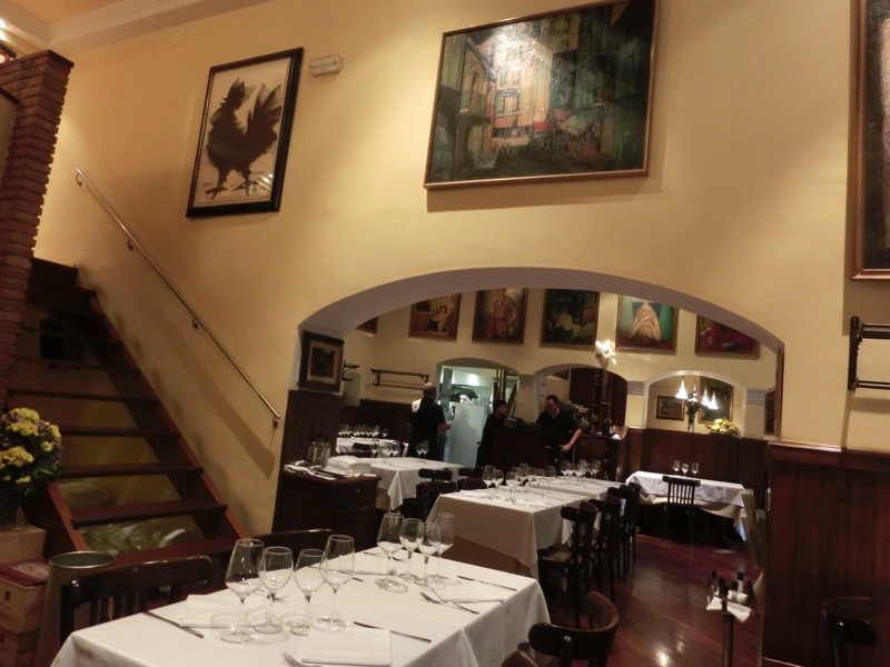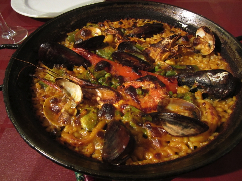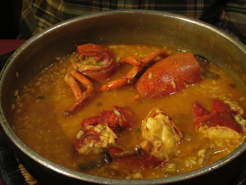 衣の率が多くなってしまうが、海の風味とcavaが合い、とてもおいしいです。続いては今日のメイン、ごはんものが登場。一つは魚介のパエージャ、これはもう間違いないですね。たっぷりの海風味がしみ込んだごはん、そして新鮮な貝やエビ。これは何度食べても飽きないおいしさです。もう一つはロブスターのリゾット。エビ風味が満載のスープとその味がしみ込んだごはん、エビは身もミソもたっぷりでいかにも新鮮でとてもおいしい。これもいいですねえ。前回来た時もこのリゾットは食べたのだが、やっぱりおいしいです。バルセロナでは海の幸、堪能しました。まだまだ食べたいところだが、明日からのリヨンは肉が中心だろうな。それはそれで楽しみだ。食後にはコーヒーをいただき、ごちそうさまでした(59.53E)。