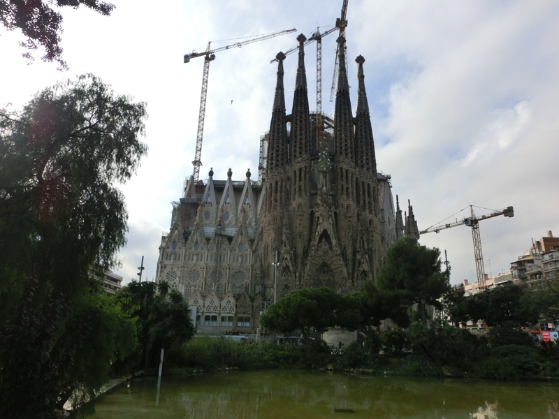 あとはすぐ前にある公園に行き、サグラダファミリアの全体像や池に映る様子などを見る。いやあ、本当にすばらしい。スペイン、いや世界を代表する世界遺産を堪能しました。次はいつ来られるか、完成の2026年までに、もう一度来ておきたいな。できれば教会内のステンドグラスはすべて入ったくらいのタイミング、東京オリンピックの後くらいで。