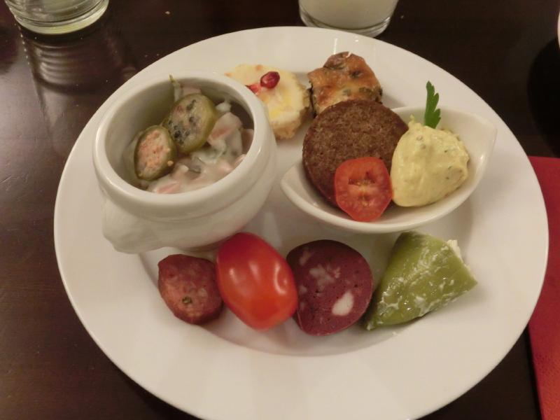 初日は時差ぼけでいつも通り3時ごろに目が覚め、その後は日記書きなどしながら過ごす。5時を過ぎ、隣も起床。シャワーを浴びてさっぱりし、7時過ぎに朝ごはんへと向かう。ロビー横にある朝ごはん場所へと行ってみると、これはすごい。ほとんどトップバッターであるのでまだきれいにそろっているのだが、ハムやチーズの充実ぶりはもちろん、ちょっとしたおかずがいい感じ。サーモンだったりサラダだったりが小さな器に入っていて、何種類もある。これはいいなあ。一通り食べようと思うとかなりの量だぞ。でもせっかくなのでいろいろといただきましょう。さらに卵料理もいただけるので、ここはシンプルに目玉焼き。少しのパンとたくさんのおかず、いいですねえ。おかわりもして、ピクルスやキッシュなども少しずついただき、ほぼ全種類をいただきました。デザートにはヨーグルトを頂き、大満足の朝ごはん。ごちそうさまでした。
