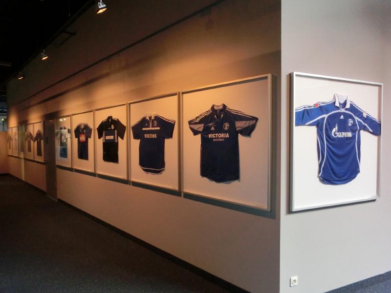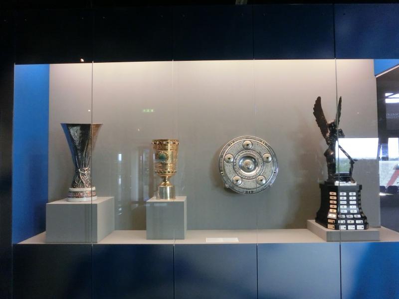 スタジアム前まできたぞ。でかいなあ。壁にはシャルケのレジェンドたちだろうか、大きなイメージ画像が書かれている。中に入り、ファンショップとやらに向かってみるがさすがに今日はやって無いようだな。スタジアムの周りをのんびり歩き、シャルケミュージアム前に到着。スタジアムツアーの集合場所はここで、まだ2時間近くあるのだが、先にミュージアムを見ることもできるので早速見てみましょうか。中に入ると、まずはシャルケ100年の歴史の中でのベストプレーヤー(ファンの投票で選んだらしい)である11名が飾られている。そのまま奥へと行くと、スタジアムの全景を見ることができる。やっぱり大きいなあ。とはいえ専用スタジアムなので、意外とピッチまでは近く感じる。明日の試合が本当に楽しみだ。