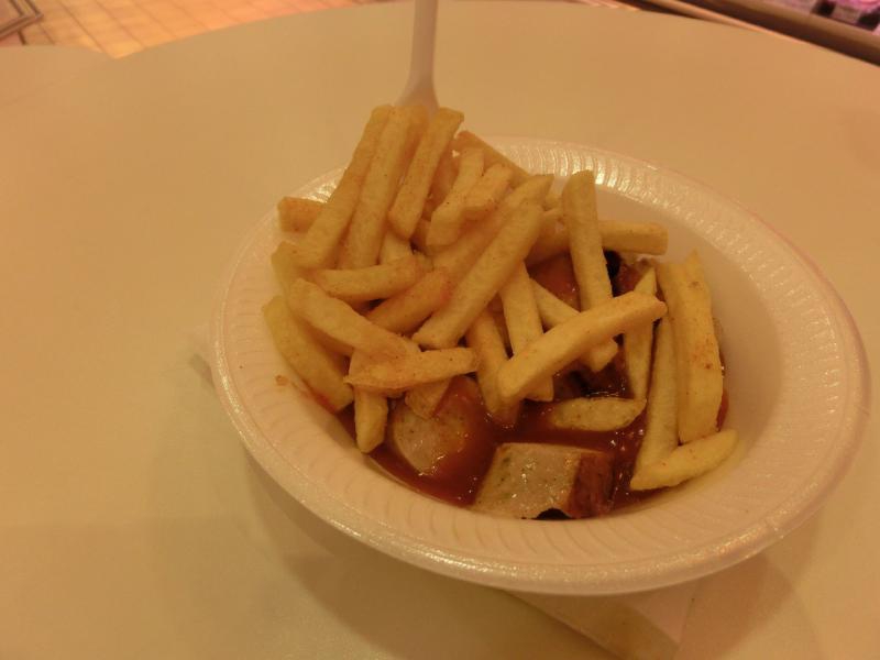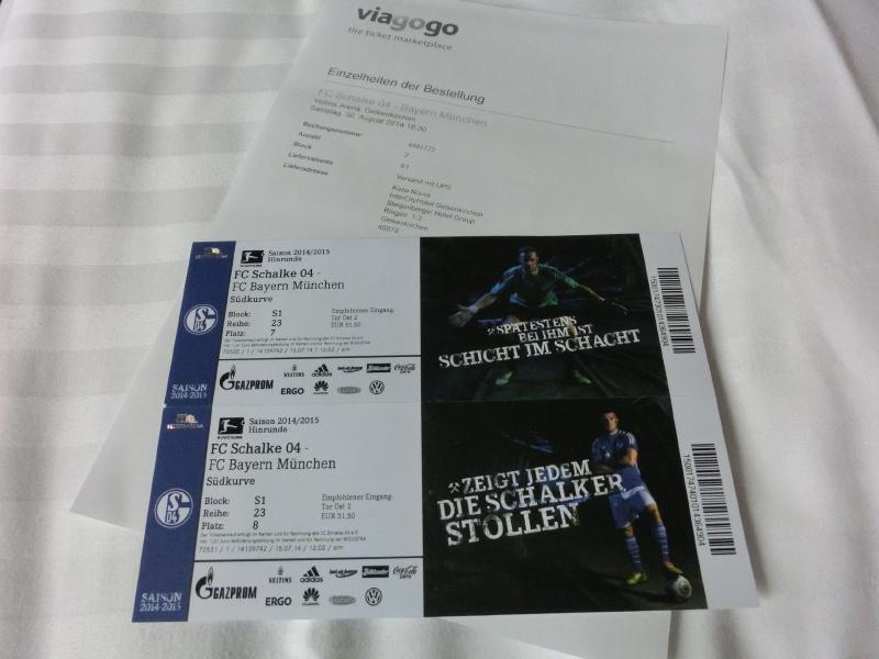 小腹がすいたので、駅前の通りにあるソーセージ屋さんに入ってみよう。ここでカレーブルストとポテトのセットを頼む(3.5E)。揚げたてのポテトがうまいなあ。ビールがほしくなるが、今は控えておこう。カレーブルストはカレー風味のソースが掛かったソーセージで、少しピリ辛でうまい。他にもいろいろソーセージがあっておいしそうだし、明日も来てみよう。ごちそうさまでした。ちょっと疲れたので、とりあえず一旦ホテルに戻りますか。もうチェックインができる時間になっていて、フロントにてお待ちかねのチケットをゲット。部屋に入り、封を開けるとありました、明日のバイエルン戦のチケットが。定価からは3倍くらいになってしまったが、これは仕方がない。その分しっかり楽しみましょう。部屋はシンプルで、ドイツ風の布団が気持ちよさそうだ。少し休憩。