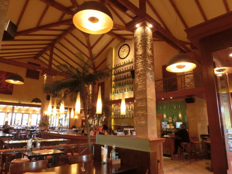 ホテルから数百メートルほど歩いたところにあるこのお店は、いわばドイツ版のファミレス。お客さんも結構入っているようだ。席に案内され、メニューを見る。うん、やっぱりファミレスっぽいな。肉が食べたいのでビーフステーキを頼み、もう一つはシュニッツェルのマッシュルームソース。どんなのか来るかな。何はともあれビールで乾杯だ。しばらくしてやって来たものは・・なかなかのもの。ステーキそのものはともかく、サラダにかかったたっぷりのドレッシング。シュニッツェルには、大量のポテトフライとマッシュルームソース。食べてみると・・どちらもうまいのだ。確かに旨いのだが、とにかくドレッシングやソースがかかりすぎ。ここまでかけなくてもいいのに・・と思いながらも、結構食べてしまいました。そりゃ身体が大きくなるわけです。食後にカプチーノを頂き、ごちそうさまでした(45.3E)。