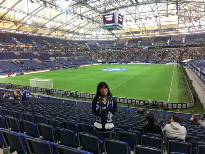 するとそこにあったのはグラウンド。そうか、練習場はここにあったんだね。当然今は何も行われていないが、タイミングが良ければここで練習風景を見学することもできるようだ。練習場の周りを行くと、シャルケレストランとやらに到着。中ではシャルカーの人たちがビールなどを楽しんでいました。気にはなるがここは通り過ぎ、ファンショップに到着。2階建てで、中に入るといろんなグッズが置いてある。まずは応援の必需品、マフラーをゲットしよう。たくさんの種類があるが、シャルケの名前入りのシンプルなのと、内田バージョンのをゲット。今日は出ないだろうが、やっぱり日本人としてはまずは内田だね。2階に上がり、防寒用にパーカーをゲット。厚手で気持ちがよさそうだ。あとはTシャツやちょっとした記念品などを買い、満足です(179.8E)。外に出ると結構寒くなってきているので、パーカーを着込みましょう。夜はもっと冷えそうだしね。