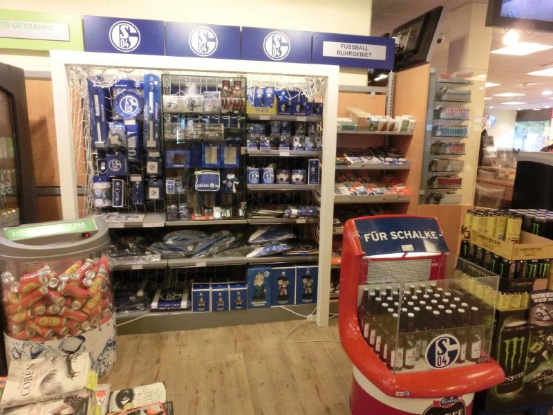 駅前に着くと、まだこんな時間だがシャルケのユニを来た人が駅前のパブでお酒を飲んだりしている。やっぱり試合当日は違うねえ。このあとどんどんと人が増えていくんだろうな。まずは駅中にあるドラッグストアに行こう。化粧品やお風呂用品のほか、健康食品やお茶、文房具やおもちゃまでいろいろ売っている。ではここでお土産探し。小さなチューブのハンドクリームがいいかな。色合いやデザインがヨーロッパぽいものを選びましょう。安いのでばらまき用にもできるし、長持ちするだろうからちょうどいいね(5.69E)。続いては、昨日も行ったスーパーへと向かう。お菓子とお茶とかもあるが、お土産にするにはどうかな?明日の朝用に昨日と同様に牛乳とバナナも買って、これで明日の朝はバッチリだ(2.18E)。続いては駅ナカの本屋さんに行きましょう。新聞が試合後がいいと思うので明日買うとして、やっぱり目につくのはサッカー雑誌。昨日はブンデスリーガの年鑑的なのを買ったが、チームごとにまとめているものがあったのでせっかくだからシャルケとバイエルンをゲットしますか(13.3E)。あとはワールドカップ関係。なにせ優勝したのがドイツなので、かなり気合の入った分厚いハードカバーの本があった。12.99ユーロと意外に安いので、結構重いがこれをゲットしましょう。なにせ優勝した国の本場のものだからね。結構重たい買い物になった。