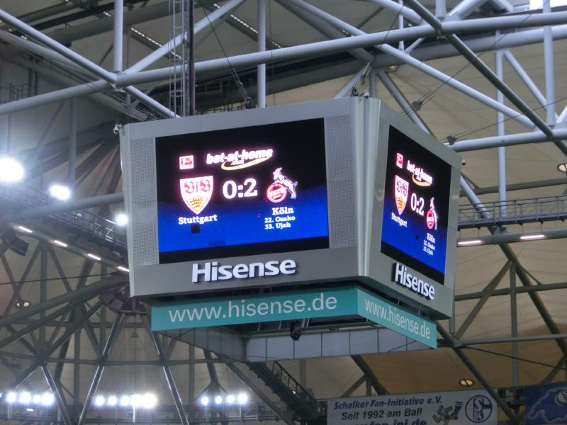 座席はS1というエリアなので、ちょうど昨日のスタジアムツアーの集合場所あたりだ。いよいよだな。座席に向かう通路から入ると、そこには緑のピッチが広がっていた。まだキックオフまで1時間以上あるので観客の入りは今のところそれほどでもないが、ゴール裏のホーム自由席とすぐ近くのコーナーに設けられたアウェイ自由席、ここにはすでにたくさんの人が入っていて応援合戦が繰り広げられている。アウェイ席はすぐ近くなのでなかなかの迫力だが、試合が始まるともっと迫力出てくるんだろうな。しばらくすると、他球場の結果や途中経過がセンターサークル上にある巨大なモニタに表示された。よくみると、フランクフルトでは乾のゴール、ケルンでは大迫のゴールがあったようだ。日本人もがんばっているなあ。ドイツだけでなく、ヨーロッパでもっともっと活躍してほしいものです。さて、今のうちに腹ごしらえをしましょうか。