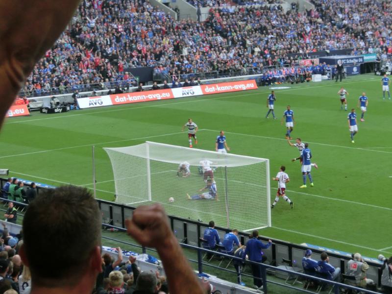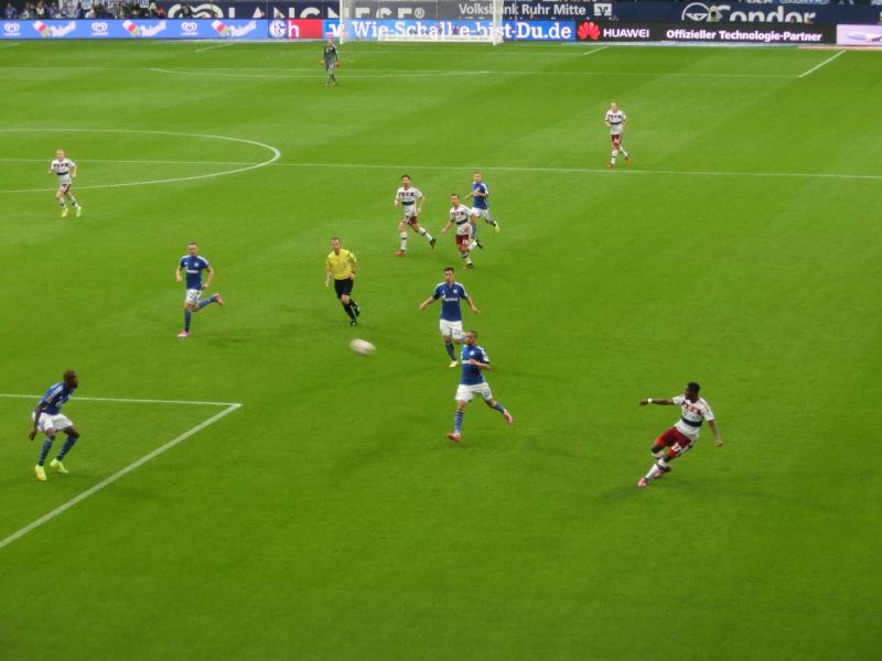 試合はバイエルンペースで始まり、前半10分にレヴァンドフスキが技ありのゴール。今季ドルトムントから移籍して、これが初ゴール。バイエルンのサポーター席は大騒ぎだ。いきなり劣勢に立たされたシャルケだが、その後はお互いチャンスを作りながらも得点にならないシーンが続く。