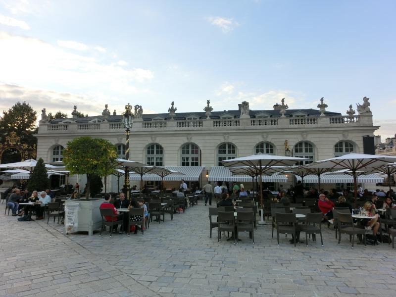 では街歩き再開。そのまま歩いていくと、突き当たりには金色の門がある。そこから入ると、そこはスタニスラス広場。世界遺産にもなっている広場だ。一辺が100メートルはあろうかという広場の真ん中に、スタニスラス公の銅像がある。これまで知らなかったが、スタニスラス公とは18世紀にこのロレーヌ地方を統治した人らしい。銅像ができるくらいなので、功績を残した人なんだろうな。その像の周りを取り囲むように市庁舎やオペラ劇場、ナンシー美術館などが建っている。それらの前にはいくつかカフェがあり、たくさんの人がゆったりとした時間を楽しんでいる。広場をしばらく散策。かなり広いので、ゆっくり回ると結構時間がすぎていた。ちょっと疲れたし、せっかくなのでカフェに入りますか。