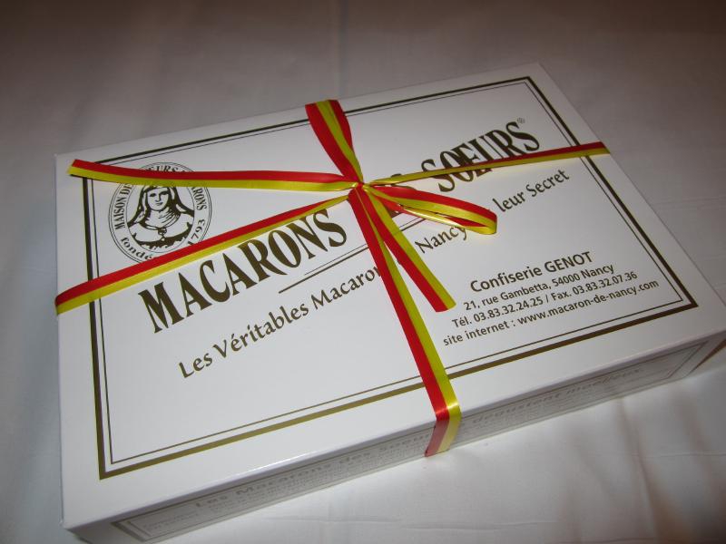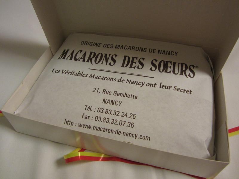マカロンと言ってもパリ風のピンクやら黄緑やら水色やら紫といった不気味なものではなく、見た目は蕎麦ぼうろのような素朴なマカロンがナンシー風。Maison des soeur macaronsという有名なお店があるので、目指して歩く。駅前は少し標高が高くなっているのか、緩やかな坂道を下りていくようだ。ここナンシーは学生の多い町のようで、大学の横を歩いていく。歴史のありそうな建物が校舎になっているようで、いい感じですね。しばらく歩いたところで、マカロンやさん発見。早速中に入ると、フランスの伝統的なお菓子がいろいろある中にマカロンを発見。焼きたてで、シートについた状態のまま売られているのだ。1ダースの箱入りがあるので、それをいただきましょう。シートに並んだ12個のマカロン、そのシートを折り返して箱詰めされ、リボンをかけていただきました。これが買えればナンシー訪問の半分は目的達成したようなもの、あとでいただきましょう(8E)。
