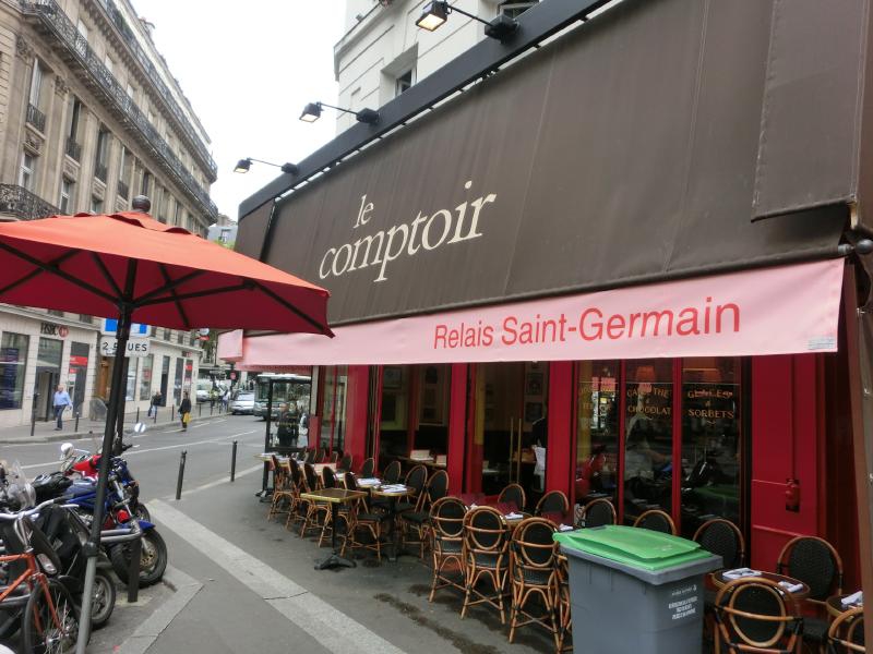 さて、まず昼ごはんをしっかり食べよう。オデオン駅の近くにあるLe Comptoir、ここはひなちゃんのお薦めでもあるので、是非行ってみたい。12時オープンなのでまだ準備中だが、時間が近づくにつれお店の前で並ぶ人がぼちぼちと出てきたので並びますか。12時になり、順番に座席に案内されていく。われわれは表に面したテーブルに案内され、すぐに周りも埋まっていく。それにしてもこっちのビストロって、横との隙間が狭い中に体格のいい人たちが納まっていくなあ。日本だったらもう少しゆったりさせるよね。まあそれがこちら流。さて、では何にしようかな。