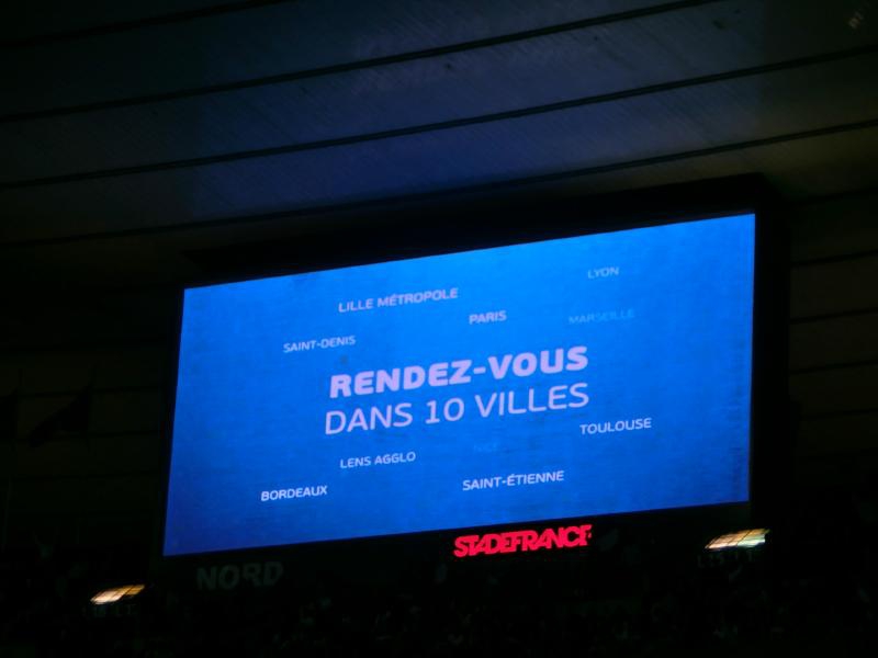 さあ、キックオフ。前半は座席に近いゴールがスペイン側になるので、フランスのディフェンスへの歓声がよくわかる。やっぱり近いところで見るプレーは迫力がありますねえ。途中で発生したウェーブにも参加しながら、あっという間に前半がスコアレスで終了。ハーフタイムには、2016年に行われるユーロの紹介がありました。機会があれば現地観戦したいものだが・・6月なので、ちょっと難しいかな。