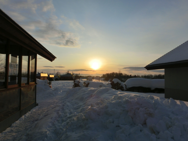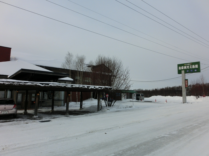 バスは札幌駅を出発。我々は、後ろから2列目の席となった。まあ今日は網走までほぼ移動なので、どこでも同じかな。札幌市内は道沿いに雪がうずたかく積まれていて、ここ数日の激しい雪を思わせる。これから走る高速道路もよく通行止めになったりするらしいが、今日は久しぶりの晴天とのことで大丈夫そうだ。1時間ほど走り、砂川SAで休憩。うん、ここは以前旭山に行ったときに立ち寄ったことがあるぞ。売店前には柔らかい雪が積もっていて、どこかの犬がうれしそうに雪と戯れていました。その後高速をおり、富良野方面へと向かう。そして最初の目的地は後藤純男美術館だが、その前に近くの公民館のようなところでお昼ごはん。ステーキランチをいただきました。