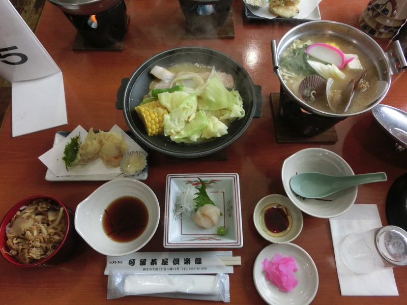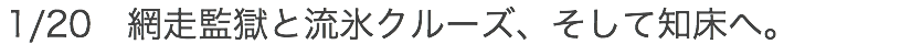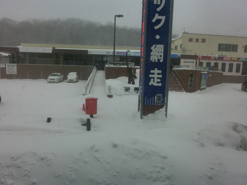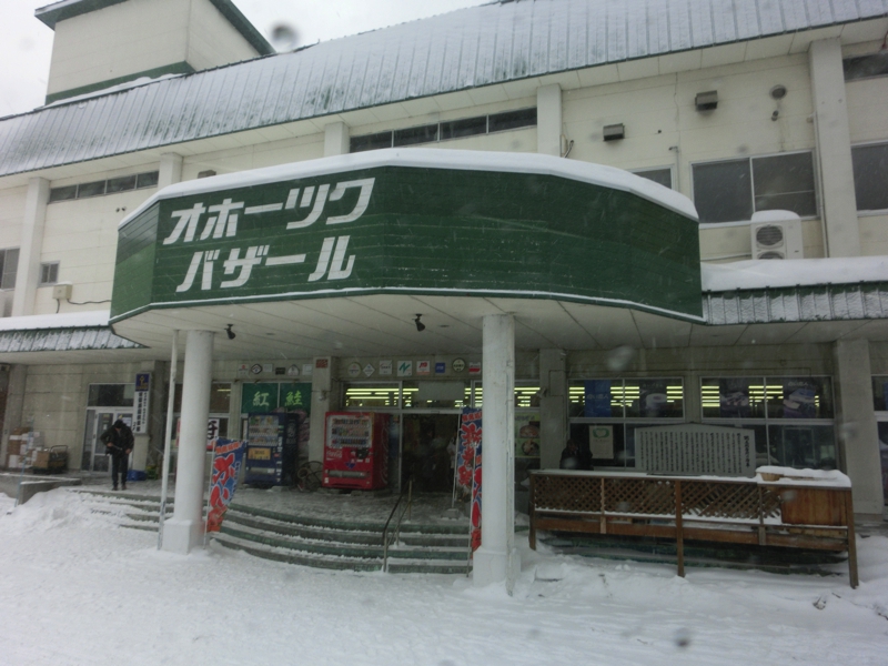 バスは食事場所へと向かう。途中に網走駅前を通るが、駅前にある「網走駅」の文字が縦書きなのは刑期を終えてここから故郷へ戻る受刑者が「まっすぐ生きる」ために縦書きということだ。なるほどね。バスはオホーツク物産館に到着し、ここの2階の食堂へと向かう。他のツアーの方も同じタイミングなのか、各テーブルには多くの料理が準備されていた。案内された席に着き、早速いただく。ホタテの刺身や天ぷら、鮭のちゃんちゃん焼き、海鮮汁という内容で、ツアーのお昼ごはんなのでこんなものかな。しっかり完食し、ごちそうさまでした。食後はお土産屋さんをみる。カニがたくさんあるが、これは安いのかなあ。昨日しっかりカニをいただいたのでもう満足だけどね。ここではまだお土産を買うことはないのでバスに戻る。かなりの雪が降っていて、予定通りであれば丁度今頃船の上だと思うと・・・本当によかった。