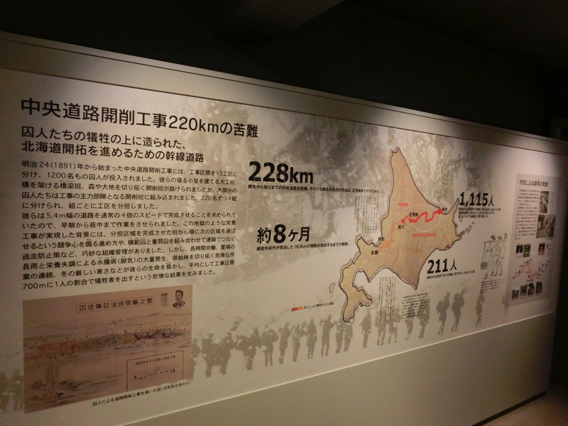 次に入ったのが監獄歴史館。ここは今の監獄が再現されていて、随分といい環境になっているようだ。同じ建物内には当時の道路開削の厳しい様子が展示されていて、その作業の中で命を落とす人も多かったことが説明されている。道東の発展にはこの犠牲があることが、歴史の事実として存在しているわけだ。