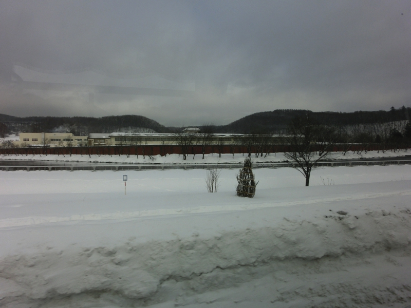バスに乗り、あとはホテルまで。途中海沿いに形が特徴的な岩がいくつかあり、それを見ながらウトロの町に入ってきたようだ。真っ白い雪の中、お店や郵便局などがあり、こんなところにも人の日常生活があるんだね。町から少し高台に登っていったところに今日のホテル、知床第一ホテルに到着。ロビーの広い、かなり大規模なホテルだ。昨日よりもエレベーターが増えたので、部屋まではスムーズに入れました。まずはお疲れさまでした。ごはんの時間まではまだ1時間以上あるので、温泉へと行こう。
