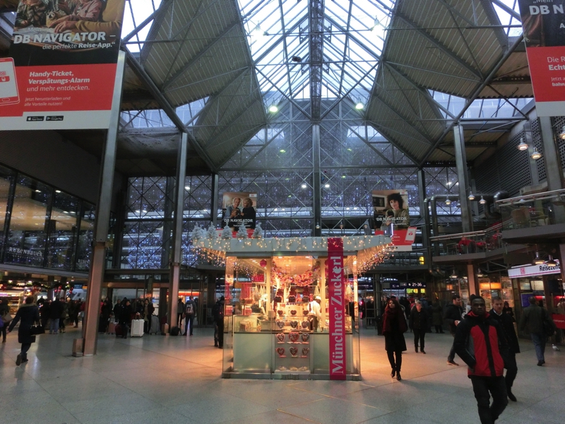 部屋に戻って荷造り。旅も終盤なので、着替えが減って洗濯物が増えてくる。お土産はシュツットガルトでいろいろ買いたいので、その分を開けておかないとね。ホテルをチェックアウト、駅前の便利なホテルでした。駅の地下街にあるレダラッハというチョコレート屋さん、日本の半分以下で買えるので家用のお土産にゲット。ではホームへと向かいましょう。シュツットガルト行きの電車はここが始発駅のようで、ホームにはすでにICEが来ていました。予約した座席がほぼ先頭なので、そこに行くまで結構時間がかかったな。出発10分くらい前に席に着き、ほっと一息。座席上にある予約表示にはMUNCHEN-STUTTGARTと表示されている。この電車はベルリンまで行くようで、隣のおじさんは終点まで行くんだね。東京-博多みたいなものかな。定刻になり、電車は静かに出発。曇り空で景色は今ひとつだが、約2時間の旅、楽しみましょう。