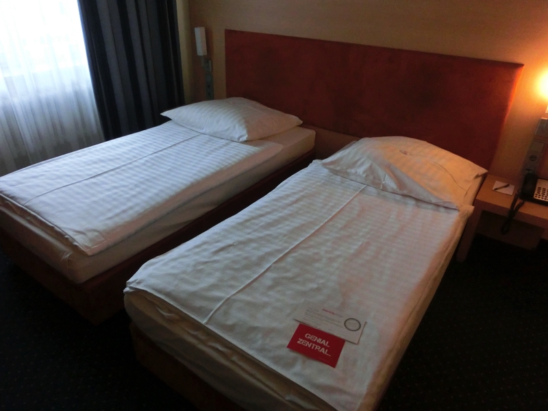 定刻より数分遅れ、シュツットガルト駅に到着。ちょっとクラシカルな感じの駅だが、どうやら大規模工事中。何年後かには、新しくなるんだろうね。今日のホテルは駅併設のInterCityHotel Stuttgart。これは楽でいい。さっそくチェックイン、部屋に入ることができました。しばし休憩。今日はスーパーでの買い物とクリスマスマーケットが目的なので、ちょっとのんびりしていてもいいかな。ということで、昼ごはんは駅に買い出しに行こう。生絞りオレンジジュース(4.5)にチキンのシュニッツェルのサンドイッチ(2.65)をゲットし、水も買って(1.75)しばらく部屋でゆっくりしましょう。