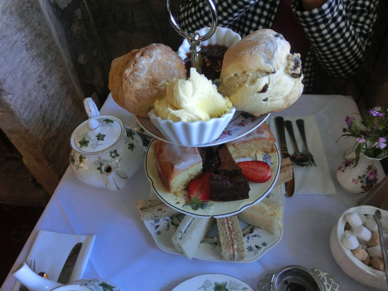 ティールームの名前はThe Bridge。歴史があるようで、建物の外観はちょっと傾いているようにも見え、なんともいい感じ。中に入るとテーブルはそれなりに埋まっていて、ちょうどお昼ご飯どき。2階の席に案内され、暖炉が近くてほんのり暖かい。このお店は阪急百貨店の英国フェアの時に来ていて、その時に来られていた方は残念ながら不在だったが、お店の人は喜んでくれました。よかったよかった。さて、ではアフタヌーンティーをいただきますか。3段重ねのお皿には、上からスコーン、ケーキ、サンドイッチ。紅茶はアッサムとダージリンをそれぞれいただく。ここのスコーンが英国フェアの時に美味しかったのだが、本場でいただくとやっぱりおいしい。クロテッドクリームはもちろんおいしいが、このジャム。いちじくが入っているので、たんなるイチゴジャムよりしっかりとした味わいがあり、砂糖の甘さは控えめでおいしい。いいですね。ただ、やっぱりアフタヌーンティーって甘い粉もんだらけ。どうしても途中で重たくなってきますねえ。ケーキもおいしいのだが、普段あまり食べない量なもので・・サンドイッチも時間につれて乾いてくるし・・どれもおいしいが気持ちがいっぱいになってきて、なんとか完食。ふう、満腹です。お店を出る前、レジのそばに今食べたジャムがあった。日本で買う5分の1くらいの値段なのにびっくり。せっかくなのでこのジャムと、紅茶のパックを買いますか。やっぱり本場は安くていいなあ。最後にもう一度挨拶して、お店を出る。ごちそうさまでした(50.3)。