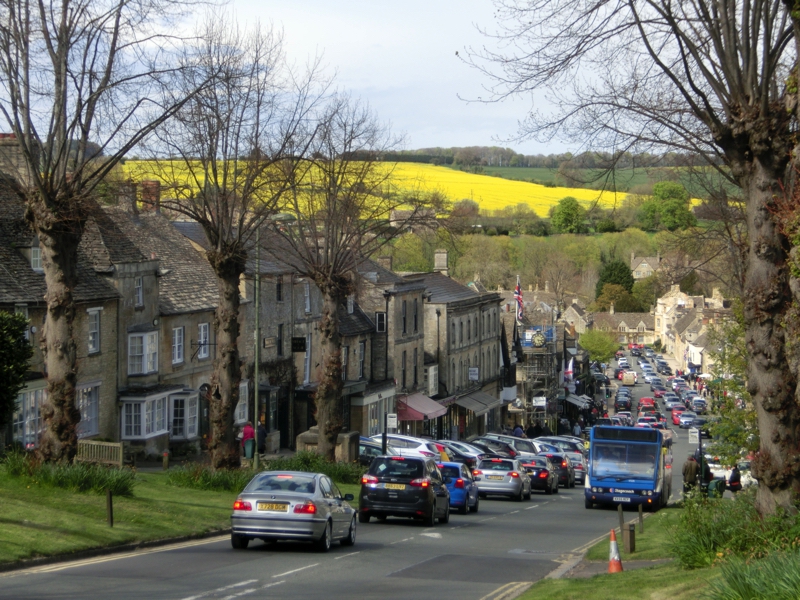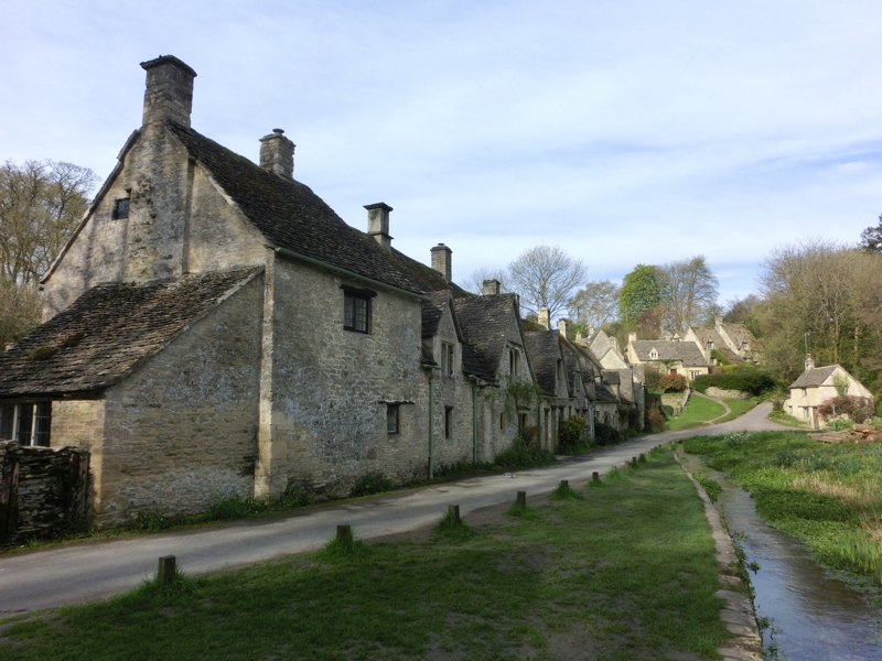 部屋に戻り、すこし休憩しつつ荷物をまとめる。一泊だけだったが、静かにゆったり過ごせたことはよかったな。そろそろ11時になる頃、ホテルをチェックアウト(171)。外に出ると、さっきよりは曇り空だしたくさんの観光客がこのあたりをうろうろしているので、やっぱり朝早く散策しておいてよかった。では行きますか。最初の目的地はボートン・オン・ザ・ウォーター。今日もやっぱりせまい道を走ることになるが、これもいい感じだな。