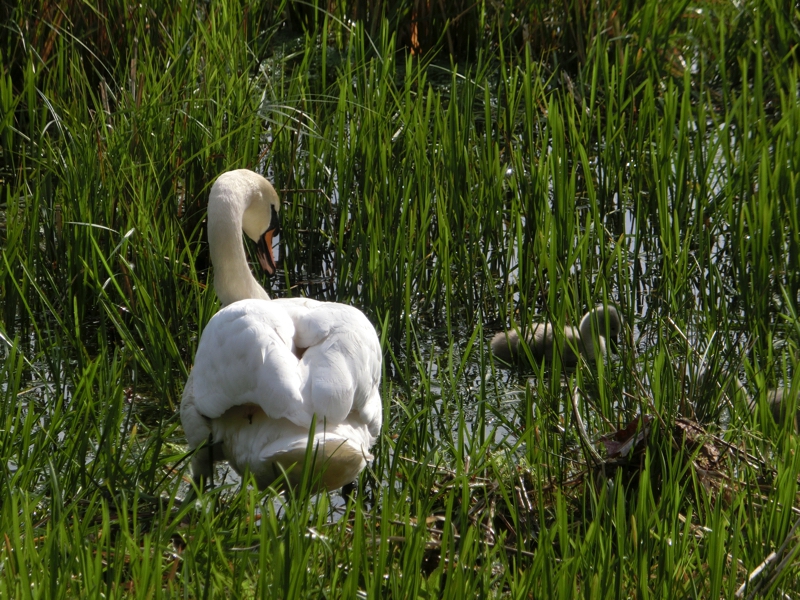 川沿いを散策して、はちみつ色の建物が並んでいるところにきた。昨日は逆光だったし黄色い車が止まっていたりしたけれど、今は朝日が差して綺麗だし、車もいなくなっている。歩いている人もいないので、ベストショットが撮り放題。いい景色だ。少し離れたアングルや近づいたアングルなど、いろんな写真を撮ってみよう。それにしても、この建物はいま何にも使ってないのだろうか。中を覗くとがらんとしているが、それなりに綺麗に片付いていて単なる空き家、のようにも見える。でもこれはこのままの姿でここにあるのがいいのかもね。奥の小道へと行ってみよう。昨日は白鳥の親子がいたのだが、今日はなんとその小道の真ん中に白鳥がどっしり鎮座。なぜこんなところにいるのだろうとも思ったが、ここは彼らの居場所、我々は通していただく立場です。近づいていくと、全く逃げる気配はないが少し羽を震わしたり首を回てきたり、軽く威嚇されているようだ。ちょうど通り過ぎるときには、くちばしで突こうとする仕草も見せる。もう一羽の白鳥は、昨日と同じ水辺にいる。よくは見えないが、子供の白鳥も何匹かいるようで、かわいく動いている様子がなんとなくわかる。静かでのんびりとした朝のひと時を楽しみながら、ホテルへと戻る。さて、朝ごはんを頂きますか。