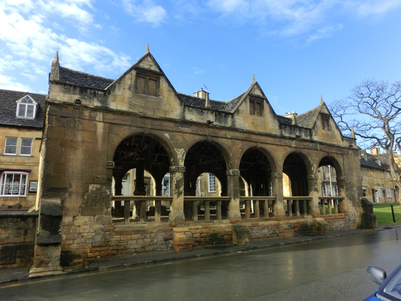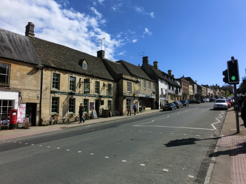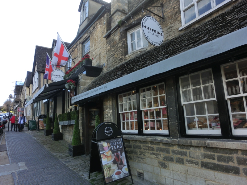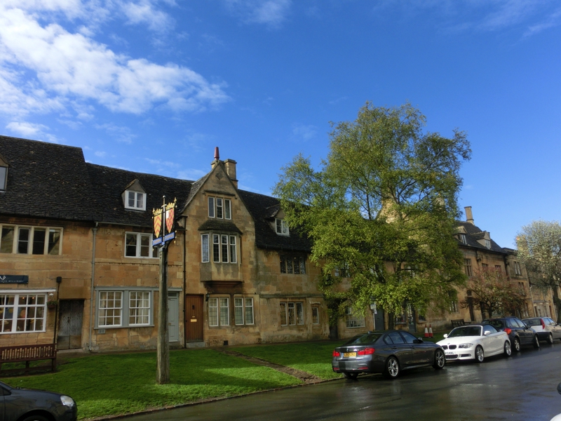 来た道を戻り、景色を楽しみながら走る。次の目的地はチッピングカムデン、約40分ほどのドライブだが、天気が怪しい。車の左側は青空が見えているのに、右側は黒い雲が広がっているというなんとも不思議な感じだが、このあとどうやら黒い雲の方へ向かうようだ。しばらく走ると、案の定すごい雨。田舎道を走るにはちょっと走りづらいくらいの豪雨になった。それでも安全運転で無事に走り、チッピングカムデンに到着。でもこの雨なので人通りもないし、どうしようかと思いながらしばらく駐車場で待つ。すると次第に雨が小降りになってきて、そして光が差してきた。青空だ。うーん、イギリスの天気って一体なんなんだろう。晴れ予報でも強烈な雨に合うし、雨予報でも結構晴れのタイミングもあるし、もう運任せだね。さて、では街歩きへと行きますか。ここは蜂蜜色のレンガ造りの家がずっとつながって建っていて、いい雰囲気だ。ただちょっと時間が遅かったか、レストラン以外にはほとんど空いているお店がない。まあ、雨上がりの空気のなかを少し散策できるだけでもいいかな。可愛い看板なども見ながら、街をぐるっと散策。さあ、では行きますか。次の目的地は、レンタカーの返却場所でもあるマンチェスター空港だ。