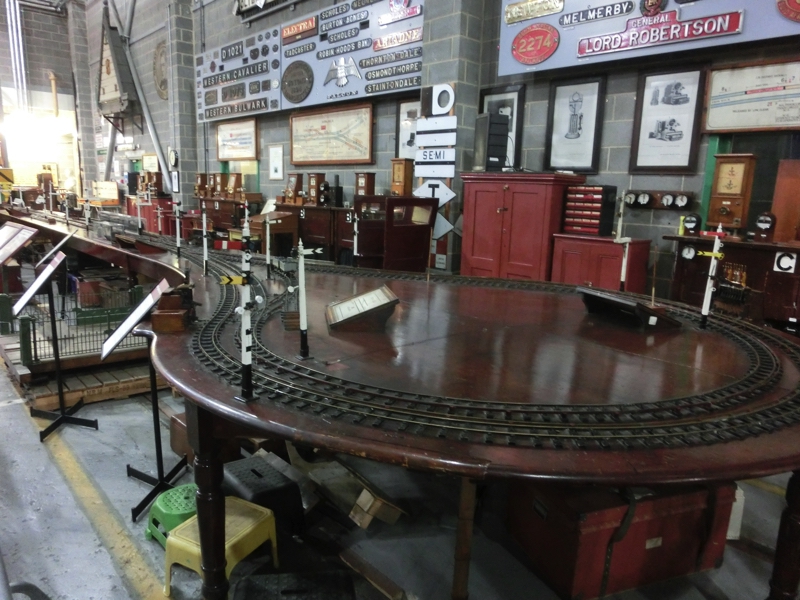 もう少し見ましょう。Great Hallの奥にはWarehouseと書いた場所があり、入ってみるとこれはお宝の宝庫。昔の行き先表示板や食堂車の食器類、ステンドグラスや模型類など、見る人が見ればかなりの価値があるのもありそうだ。じっくり見てたら何日もかかるだろうな。