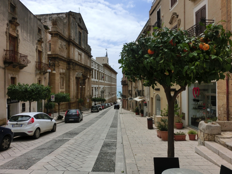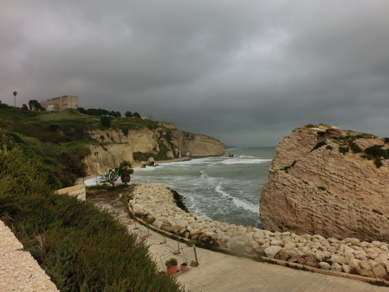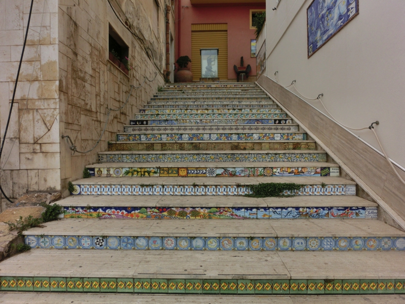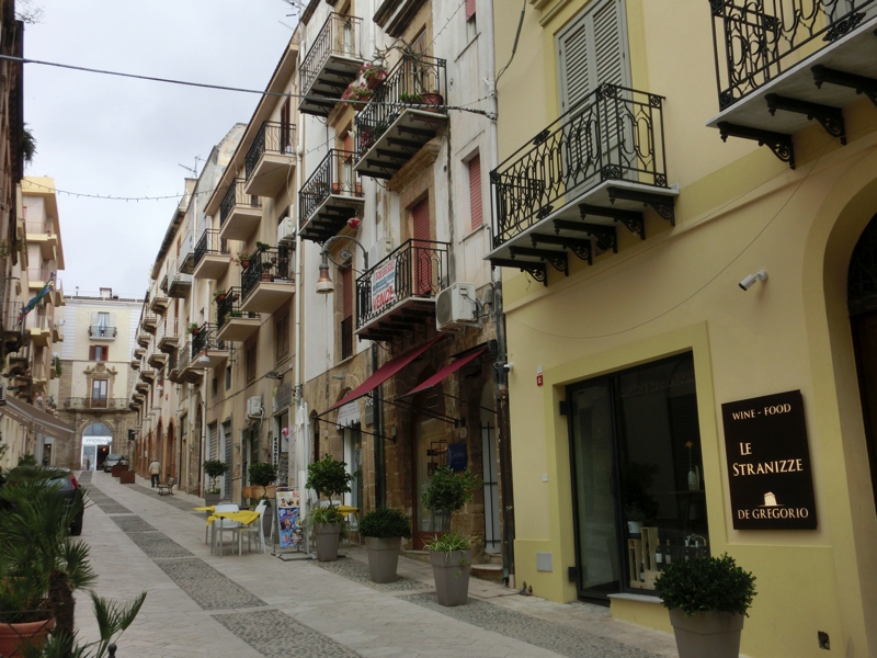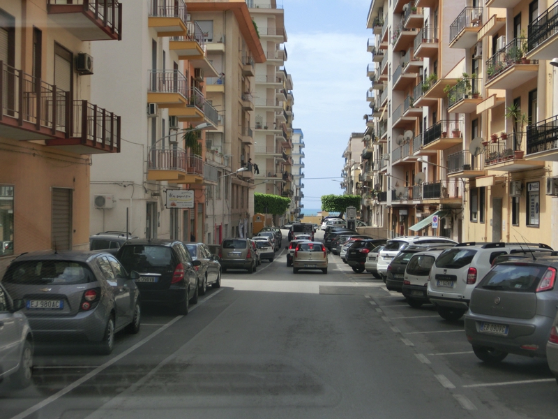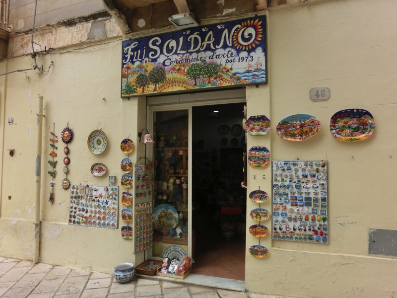 海に面した通りに出られたり、シャッカ名産の陶器のお店があったり、この辺りからお店が増えてきたぞ。ただ、ごはんやさんがあまりない。あってもいまひとつピンとこない。そのまま行くと結局街の中心らしき広場まで来たが、ここにも軽食スタンドくらいしかないし、広場から伸びるもう一本のメインストリートを歩いてみるがごはん場所はない。ローマ通りを歩くと、再びさっき来た海が見える広場まで戻ってきた。うーん、ここまでは特に何もなかったな。ではごはん場所を求めて、海の方へ降りて行きますか。